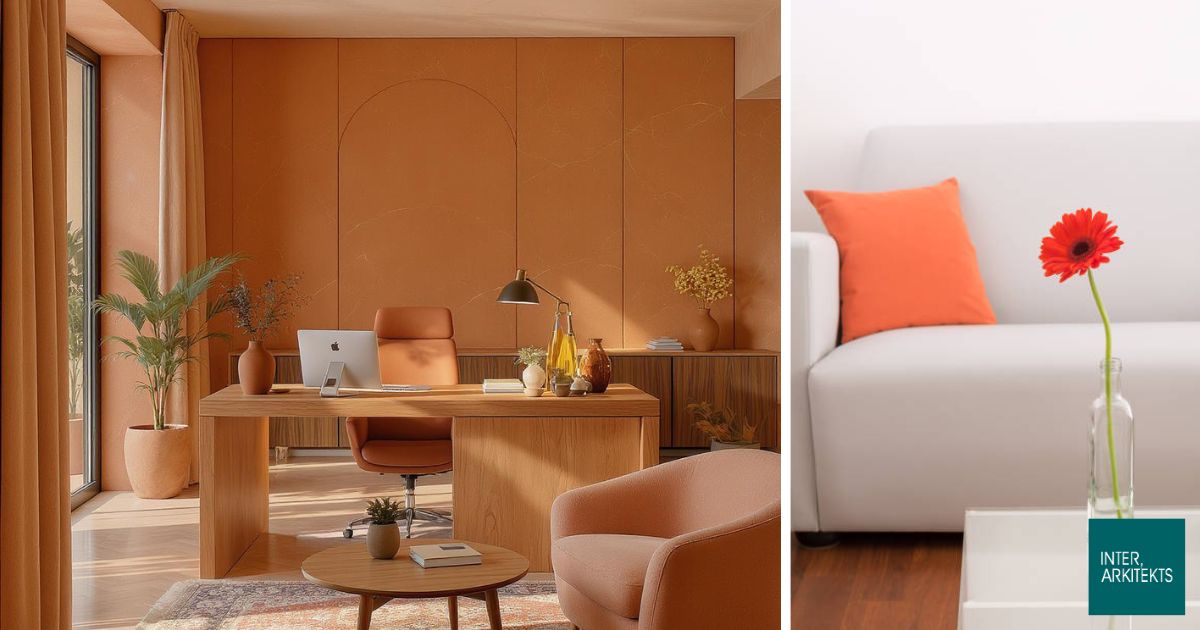 Το πορτοκαλί χρώμα είναι ιδιαίτερα σύνηθες σε τεχνοτροπίες, ταπετσαρίες και διακοσμητικά μοτίβα. Συνδυάζεται εύκολα ως accent color αφού μπορεί να αποτελέσει την θερμή μικρή αντίθεση που χρειάζεται ένας επαγγελματικός χώρος για να τραβήξει τις εντυπώσεις.